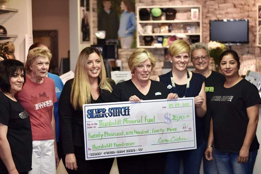 On Wednesday April 11, 2018, Silver Stitch Embroidery announced an initiative to raise funds to assist the victims of the Humboldt bus crash in Nipawin Saskatchewan. Humboldt logo pins, t-shirts and crests were sold.